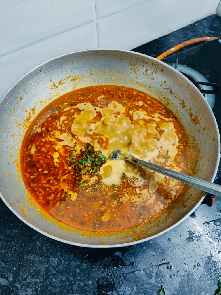 टमाटर के बारीक तुकडे करके हम उसकी ग्रेव्ही बनायेंगे  और ये अच्छे से भून जाये तो हम ये सब  मिक्सर मे बारिक पीस लेंगे