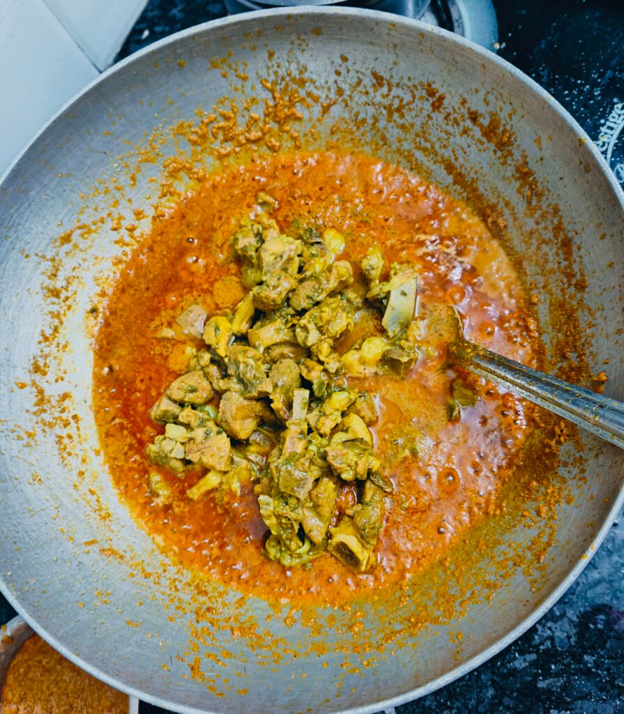ये सब अच्छे से पक जाये तो उसने हम मटन के पीस डालेंगे और उसे मिक्स कर लेंगे