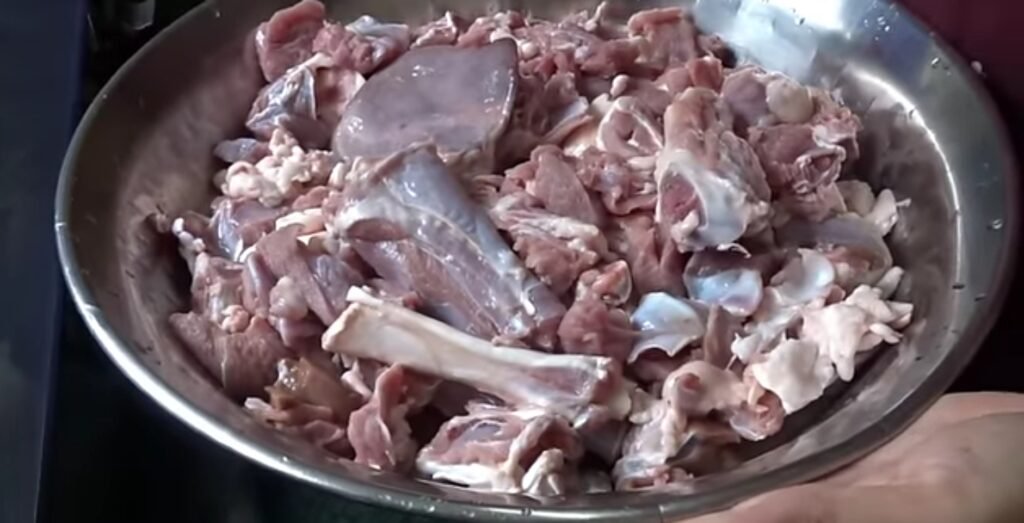तो सबसे पहले हम एक बर्तन में मटन लेंगे और उसे तीन से चार पानी से अच्छे से  धोयेंगे