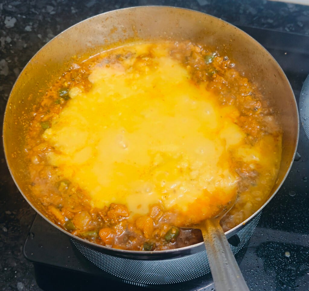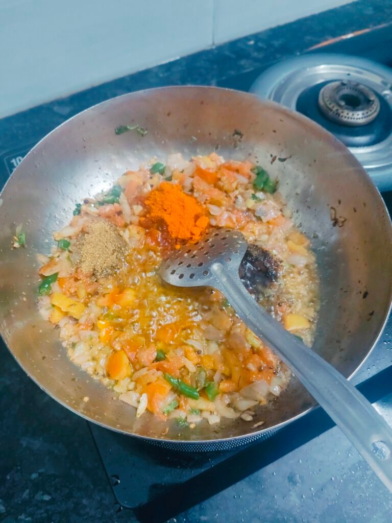 हमने गॅस पर पकाने के लिये दाल रखी थी वो निकाल कर लेंगे फिर उसे तडका लगा ने के लिए गॅस पर कढाई रखेंगे उसमे तीन से चार चम्मच तेल डालेंगे और उसे गरम होने के बाद अर्धा चमचा राई और जीरा डाल देंगे ओ होने के बाद उसमे प्याज डाल देंगे और उसे अच्छे से लाल होने तक भुनेंगे प्याज होने के बाद हम उसमे हरी मिर्च लसूण और अद्रक की पेस्ट और टमाटर डाल देंगे फिर हलदी पावडर लाल मिर्च पावडर धनिया पावडर और गरम मसाला डाल देंगे अगर आपके पास करी पत्ता होगा तो वो भी डाल सकते है