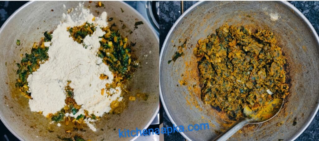 फिर कढई पे ढक्कन रख देंगे और पालक को अच्छे से पकने देंगे पालक होने के बाद उसमे हम 2,से 3 चम्मच बेसन डाल देंगे और साथ के नुसार नमक भी डाल देंगे