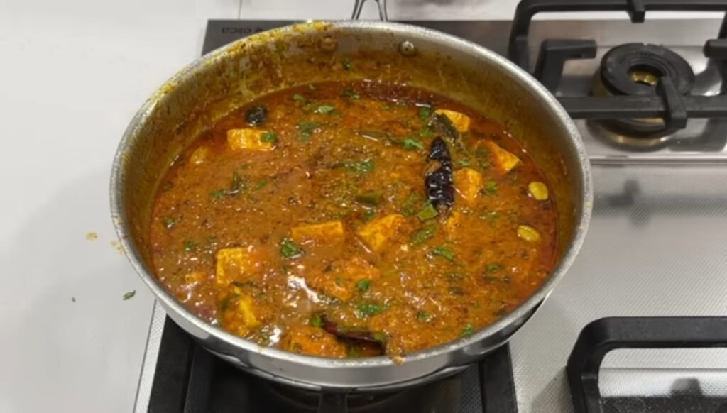 पाणी 1/२ या पाऊन ग्लास डालना है इसका मसाला ज्यादा पतला नही बनना चाहिए पाणी डालने के बाद हम उसे थोडा एक दो उबली आने तक रखेंगे उबली आने के बात हमने जो पनीर शॅलो फ्राय करके लिया था वह डालेंगे उसके बाद हम दो चमचे घी गरम करके लेंगे और वह डालेंगे हमारे पनीर मसाले की सब्जी का टेस्ट अच्छा आयेगा फिर बारीक धनिया डालेंगे और अच्छे से उबाल कर लेंगे