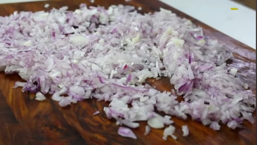 उसके बाद हम प्याज को बारीक सा कट कर लेंगे उसके साथ ही हम लसूण अद्रक और हरी मिर्ची को बारीक करके लेंगे
